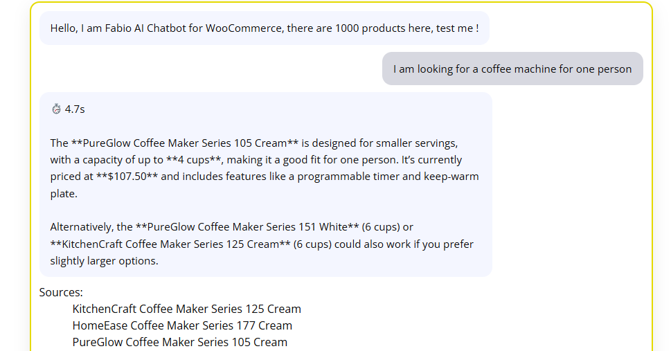 Fabio AI Chatbot works with small and large product catalogs.