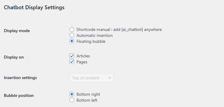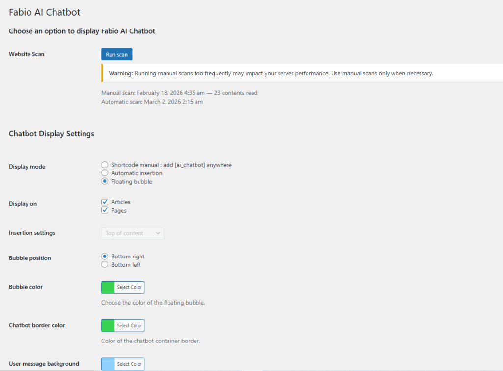 5️⃣ 5- Choose how to Display Fabio AI ChatBot